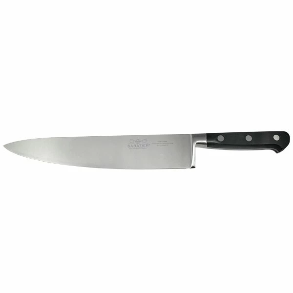 En acier inoxydable renforcé au carbone, le couteau à découper Les forgés est très résistant. Son manche satiné ne glisse pas.