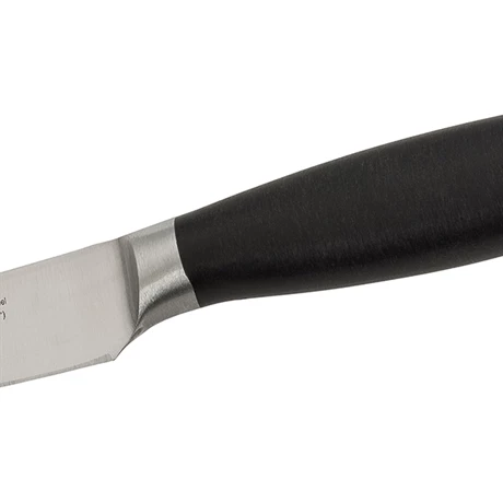 Ce couteau fabriqué en Espagne a une lame de 10 cm et est forgé à chaud en une seule pièce sans soudure. Son manche injecté en polypropylène noir assure une excellente durabilité. Il est surmoulé sur la soie du couteau pour être parfaitement inséparable et assurer un ensemble solide. Hygiénique, ergonomique et agréable à toucher, le manche est également très résistant aux chocs ainsi qu’aux aliments acides et variations de températures.