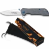 Couteau pliant Albainox 18586, lame acier inox longueur 9 cm et manche en bois zébra. Système de verrouillage liner lock.