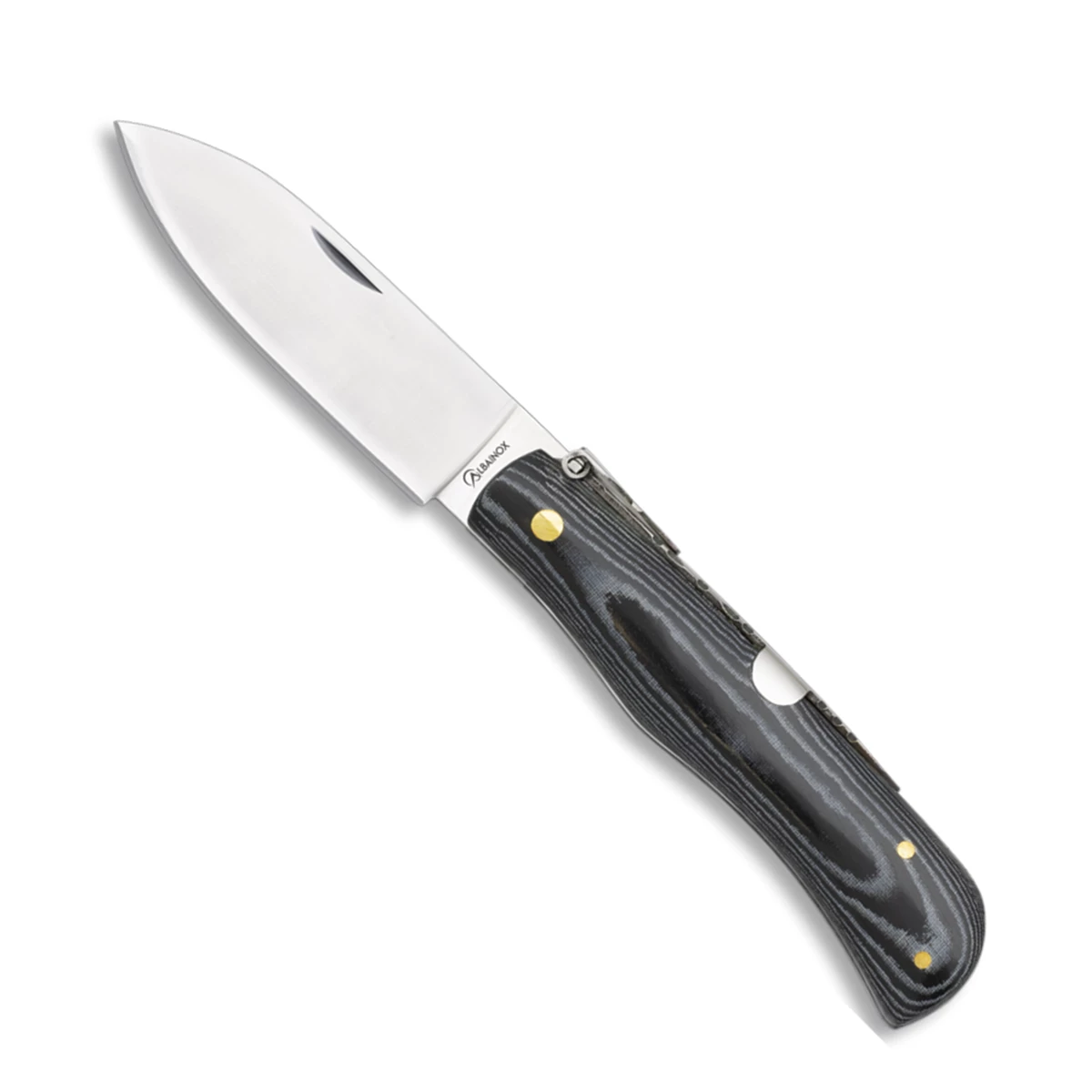 Couteau pliant de poche ALBAINOX 01650 : lame carbone longueur 8.3 cm, manche en mikarta noir.