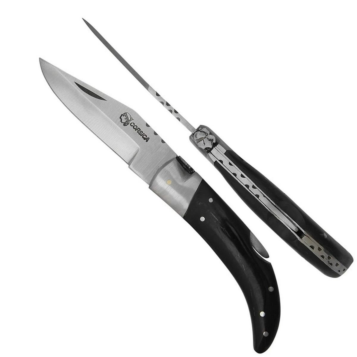 Couteau pliant Pittuda 30152, lame acier inox longueur 10 cm et manche en corne