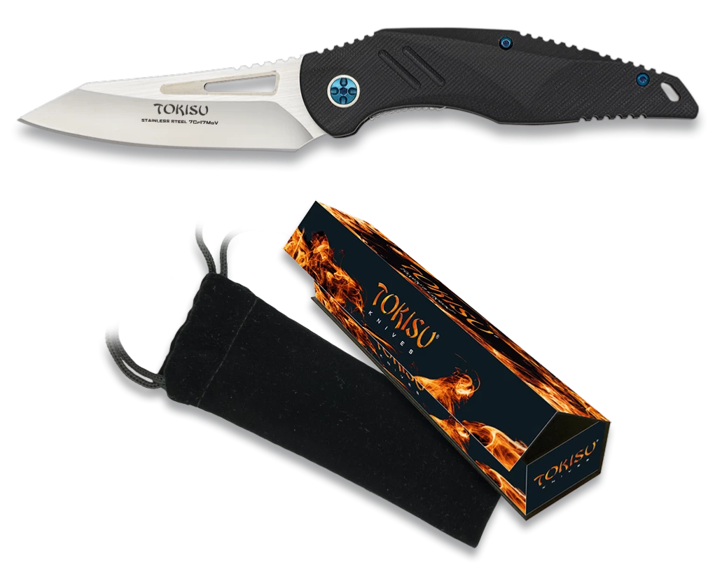 Couteau pliant TOKISU 18685, lame straight back en acier 7Cr17Mov longueur 8.8 cm, manche G10 noir. Pivot en titane avec roulement Ă billes.