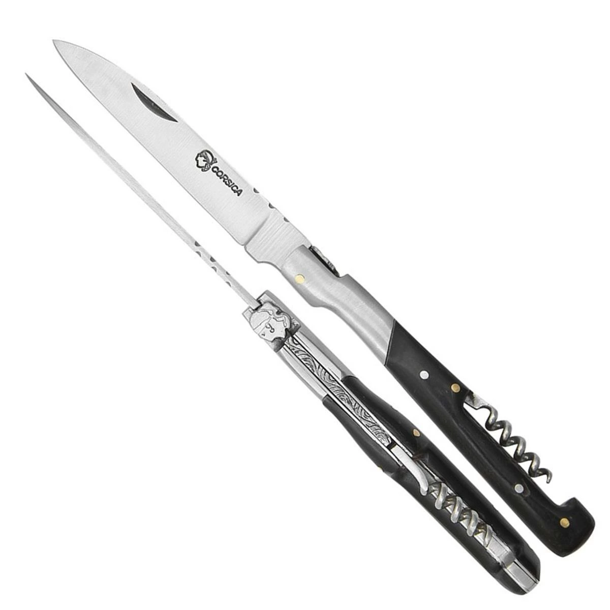 Couteau pliant van Corsica 30137, lame acier inox longueur 10.5 cm et manche avec plaquettes en corne, virole acier inox.