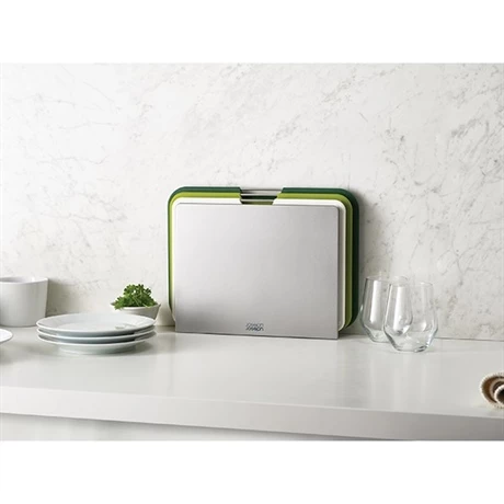 Le support de rangement maintient les planches séparées pour permettre à l’air de circuler de manière à ce que les planches puissent sécher uniformément. Le socle du support de rangement est muni de pieds antidérapants. Design, vos planches se composent de différentes nuances de vert pour une ambiance nature reposante dans vos cuisines.