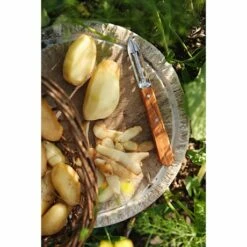 Chaque ustensile est muni d’un manche en bois d’olivier, symbole de la Provence. AgrĂ©able au toucher, poli, il possède un veinage dense et sinueux qui apporte du caractère aux couteaux. Les manches sont vernis pour ĂŞtre protĂ©gĂ©s contre les salissures et l’eau.