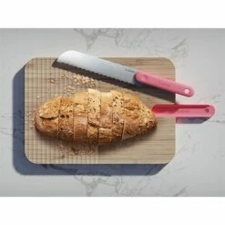 Aboutissement d’une recherche intense pour l’expérience la plus innovante et adaptée possible, la planche à découper avec couteau à pain intégré Trebonn a été particulièrement soignée en termes de combinaison de ses deux ustensiles pour ne former qu’un seul outil harmonieux. Afin de dissimuler la lame dans le corps de la planche, une fente a été taillée dans le bois de bambou et une attache magnétique permet de fixer les deux ensemble en glissant simplement le couteau à l’intérieur. Optimisée au maximum, la planche s’accroche via un trou dans la glissière et le manche du couteau pour pouvoir l’accrocher au mur et exposer son coloris rose moderne.