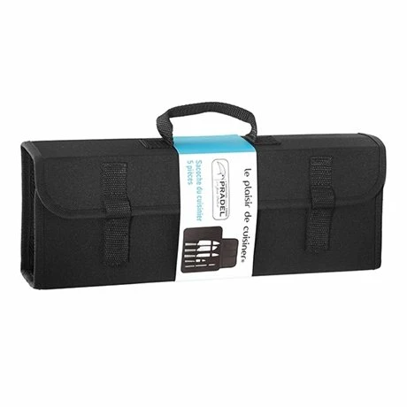 Cette sacoche du cuisinier de la marque Pradel par Jean Dubost contient 4 couteaux de qualitĂ© professionnelle indispensables en cuisine : couteau de chef, santoku, Ă dĂ©couper et couteau d’office, et 1 fusil Ă aiguiser. Multifonctions, ces couteaux sont dotĂ©s de lames en acier inox d’Ă©paisseur 2,2 mm. Ils sont prĂ©sentĂ©s dans une sacoche de cuisinier noire avec rabats de protection.